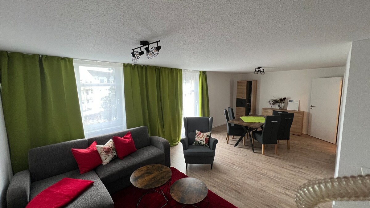 Apartamento soleado en las afueras de Zwickau. Buena conexión con B 93, B 173, A 72 y A 4. El apartamento tiene una gran cocina, totalmente equipada con cocina, nevera, lavavajillas, microondas, cafetera, tostadora, hervidor de agua y muchos platos. La acogedora sala de estar está equipada con TV, sofá cama y sillón. En el dormitorio hay 3 camas individuales, cómodas y armario.