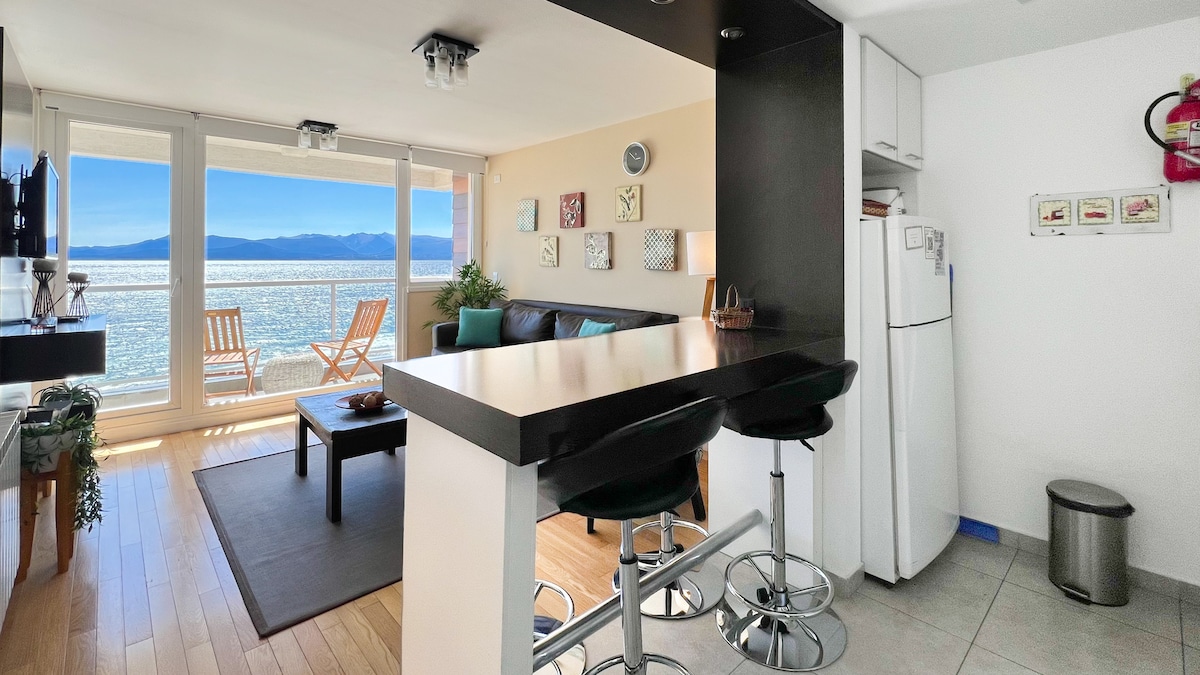 Despertate frente al Nahuel Huapi en un apartamento premium, moderno y luminoso, con vista panorámica desde todos sus espacios. La cocina está totalmente equipada y cuenta con dos baños completos. El complejo ofrece piscina climatizada, spa, gimnasio, restaurante, bar y recepción 24 hs. Ubicado en una zona tranquila y elegante, a solo 10 cuadras (15 min a pie) del Centro Cívico. Ideal para disfrutar Bariloche con confort y una vista inigualable.