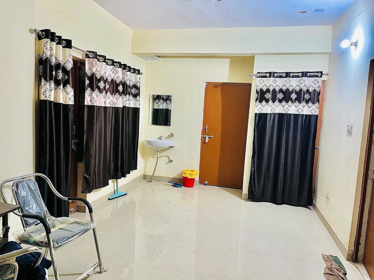 - Situado en el centro del mercado y muy buena conectividad con Triveni Sangam. - La habitación es adecuada para 3 adultos. - Aparcamiento disponible en el alojamiento - Prayag Triveni Sangam a solo 4 km. - La estación de tren de Cheoki está a solo 150 metros. - Estación de tren de Naini a 1 km y cruce de Prayagraj a 6-7 km. - Cerca del restaurante familiar vegetariano Sri Ram Kachori. - Mesa y silla de ordenador disponibles para trabajo de oficina. - Instalaciones de géiseres disponibles. - Televisión de 50 pulgadas - Acceso a la cocina solo bajo petición especial y para estancias largas.