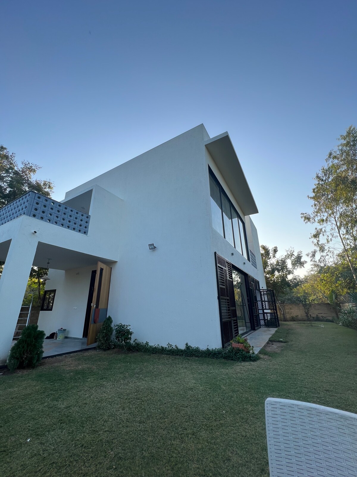 Escápate a este sereno refugio de fin de semana en la prestigiosa Kensville Golf Estate cerca de Ahmedabad. Disfruta de una sala de estar espaciosa, una piscina elevada y zonas de relax inspiradas en la naturaleza. Cuidador disponible las 24 horas para tu comodidad. Haz un pedido desde la casa club o conduce unos minutos para cenar allí. Si quieres probar los sabores locales, el conserje puede prepararte comidas por una tarifa nominal. Mantente en forma jugando al bádminton o explora la finca paseando por la naturaleza. Una escapada perfecta para la relajación y la recreación.