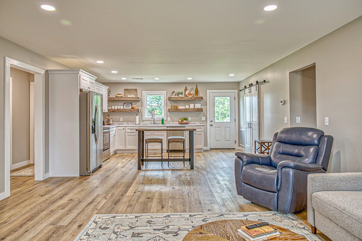 1 cama tamaño king, 1 sofá cama tamaño queen, espacio de trabajo dedicado. Desconecta de la rutina en este alojamiento tranquilo y acogedor rodeado de un prado de ovejas, a solo 2 millas de la I-40. Estanque de pesca disponible bajo petición. Estamos ubicados a solo 15 minutos de la encantadora ciudad pequeña de Cookeville, TN. También estamos cerca de hermosas atracciones naturales, como cascadas y lagos. Cookeville está situado entre Nashville, Knoxville y Chattanooga.