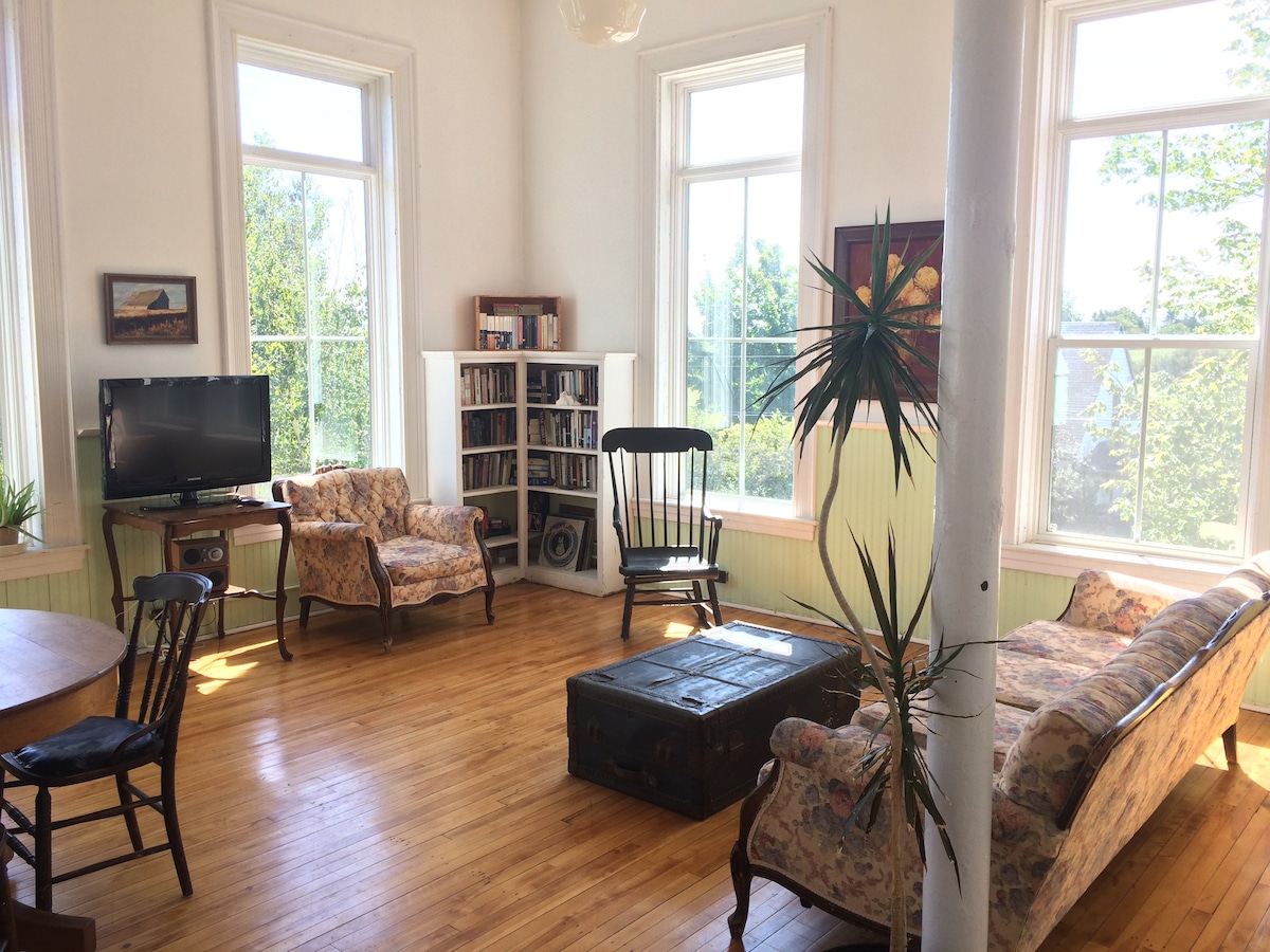 This century old school house is a hidden gem. Nestled at the end of 'School Lane' this building has been converted and is now home to a loft apartment and the offices of a local environmental charity. This gorgeous sunlit loft has been updated with modern fixings but has retained all of it's historic charm. With a fully equipped open concept kitchen, beautiful bathroom with antique clawfoot tub, 14 foot ceilings, 55” TV Netflix Amazon Prime etc+ cozy sunlit bedroom - you'll be right at home