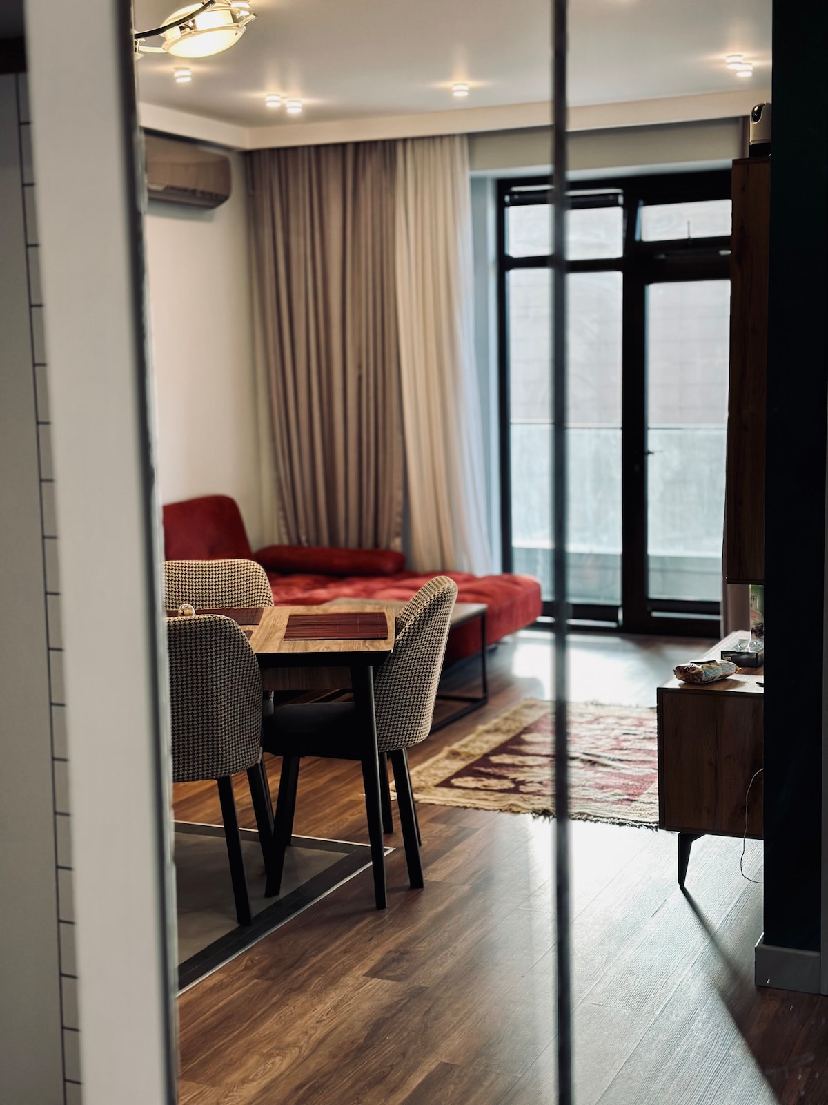 Nuestro apartamento está situado en el corazón del centro histórico de la ciudad, dentro del Icherisheher protegido por la UNESCO, a pocos pasos de la Torre Doncella y el Palacio Shirvanshah. Relájate en el balcón y disfruta del ambiente tranquilo del casco antiguo, o contempla las impresionantes vistas de la ciudad desde las ventanas. Equipado con electrodomésticos modernos, una cocina totalmente equipada y una acogedora sala de estar, es el refugio perfecto. También estás a pocos minutos de restaurantes, cafés y transporte público.