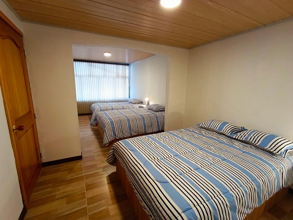 En este hermoso y acogedor apartamento se sentirá como en casa; ubicado en un condominio residencial muy tranquilo a 5 minutos de la vía panamericana donde se encuentra el CC Unicentro y a 5 minutos el Hospital San Pedro, zona de restaurantes. Tiene lo necesario para una cómoda estadía. Cocina, sala, comedor, lavandería, 3 habitaciones, 2 baños con agua caliente, TV, Wifi, y estacionamiento gratuito. El condominio cuenta con vigilancia 24H, canchas, salones comunales y minimarkets.