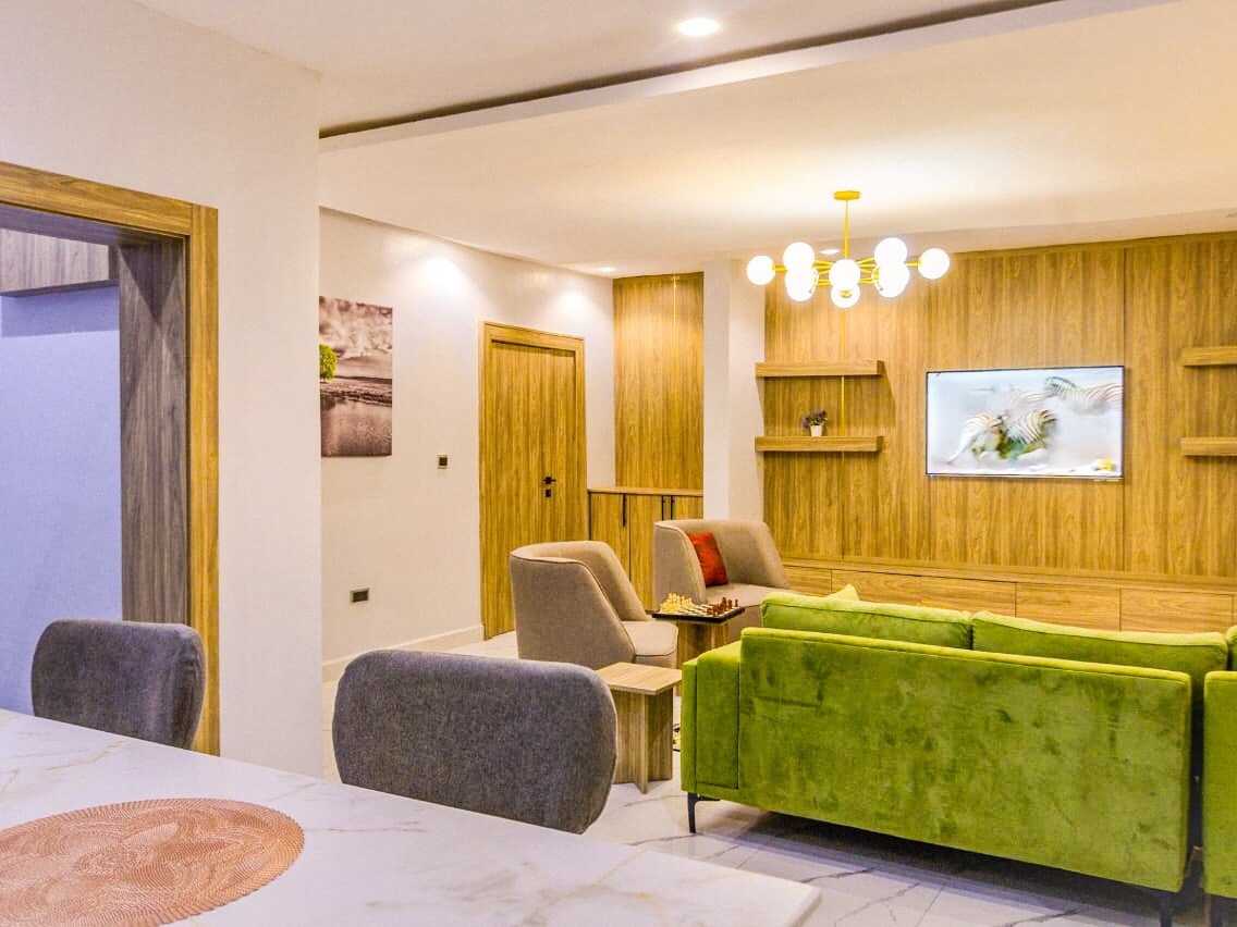 Nuestro Exotic 2 BR se encuentra en un barrio tranquilo y muy deseable de Abuja. Está a pocos minutos del Estadio Nacional. Disfruta de todo lo que Abuja tiene para ofrecer, desde parques, museos, centros comerciales, cafeterías y los mejores restaurantes de la ciudad, todo a 8-10 minutos de distancia. Este cálido apartamento está totalmente amueblado y totalmente abastecido con muebles modernos, ropa de cama y accesorios, cuidadosamente diseñado pensando en el huésped. ¡Disfruta de un ambiente muy acogedor durante tu estancia de larga o corta duración!