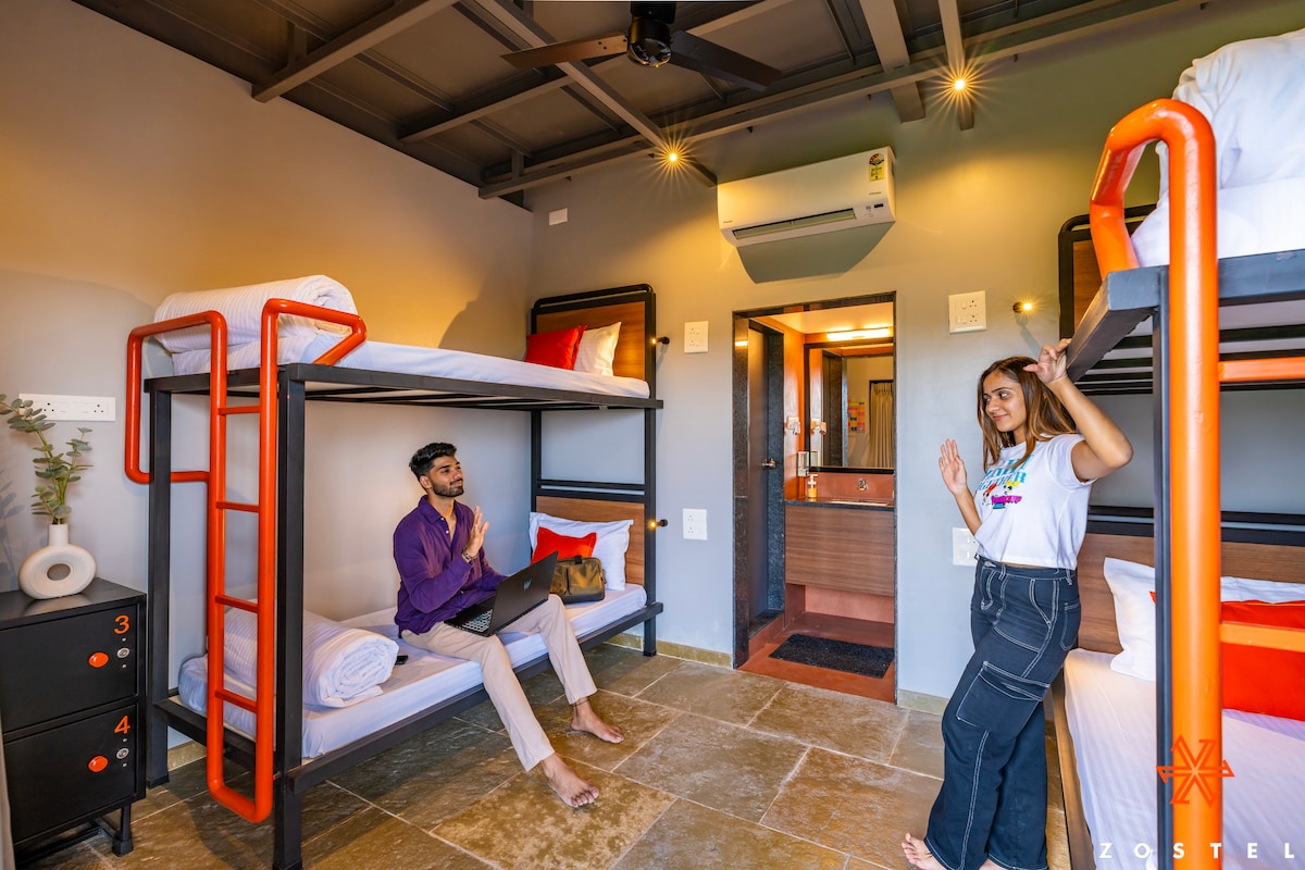 Recharge after your daily fun in this dorm that comes with a bunk bed, a balcony, an AC, and an en-suite washroom. Welcome to Zostel Nashik, your backpacking escape amidst Maharashtra's vineyards. Unwind poolside, compete in TT battles, lounge in the garden, enjoy hot meals, share bonfire stories & pick between energetic dorms or private rooms.