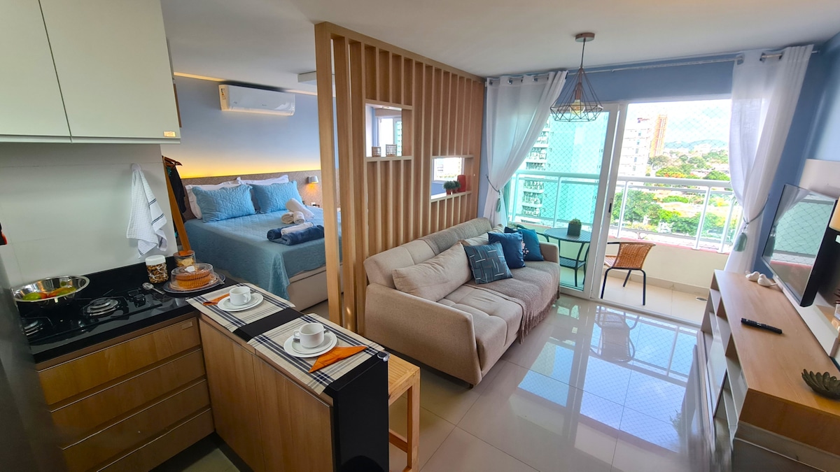 Apartamento de 50 m², con 1 dormitorio, sala de estar, cocina y balcón, frente al mar y la famosa playa de Ponta Negra. Se trata de un piso extremadamente nuevo, cómodo y acogedor, equipado con aire acondicionado, Smartv de 50 pulgadas con acceso a Youtube y Netflix, con TV por cable e internet, además de tener una hermosa vista al mar y a la colina de Careca. La cocina está equipada con vajilla, cubiertos y utensilios varios, nevera inoxidable, cocina, microondas, cafetera y mesa de comedor.