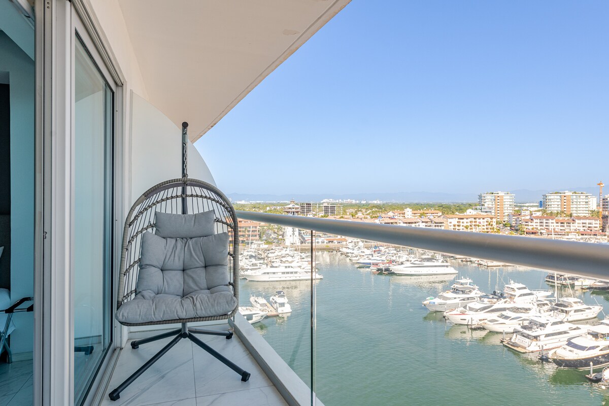 Disfruta del lujo y la comodidad en el corazón de Marina Vallarta. Ubicado en el piso 7, este exclusivo condominio ofrece una experiencia funcional y moderna con una de las mejores vistas de la región. Desde tu balcón privado, podrás contemplar el movimiento de los yates, la iluminación nocturna de la marina, el despegue de aviones y la majestuosa Sierra Madre. • Espacios Integrados: Una sala luminosa con Smart TV de 65” que conecta con una habitación principal equipada con cama King Size