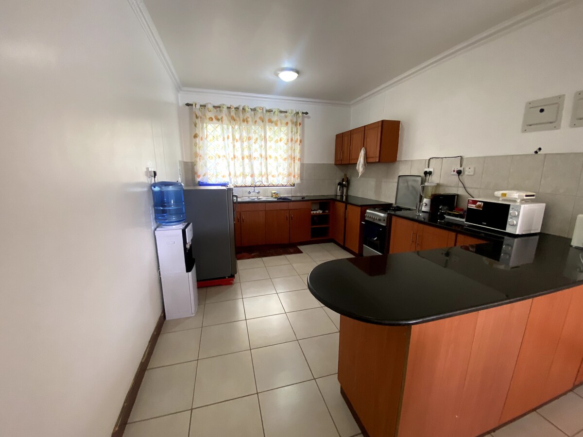 Lleva a toda la familia a este fantástico alojamiento que tiene un montón de espacio para divertirse. Los 2 dormitorios espaciosos con baño y cocina abierta ofrecen el hogar perfecto cuando estés en Kisumu. Se encuentra en un barrio agradable y tranquilo. Ha sido amueblado pensando en ti, ya sea que viajes por trabajo o para pasar tiempo con amigos y familiares, tus necesidades están cubiertas. Con amplio aparcamiento, seguridad de última generación 24/7, internet rápido, Netflix, a poca distancia a pie de la playa y del parque Impala. Ven a disfrutar de nuestra hospitalidad.