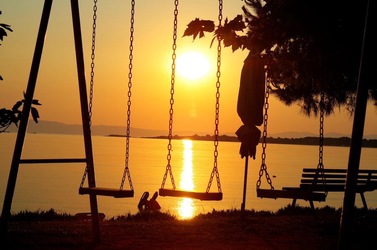 Relájate con toda la familia en este tranquilo lugar de alojamiento. Hermosa casa de campo de 2 dormitorios situada a pocos pasos de la tranquila playa familiar y el cálido mar Mediterráneo, incluye una cocina completa, una habitación para niños y un dormitorio y balcón con vistas al infinito azul de la bahía de Ierissos. A solo 4 kilómetros de restaurantes y tiendas.