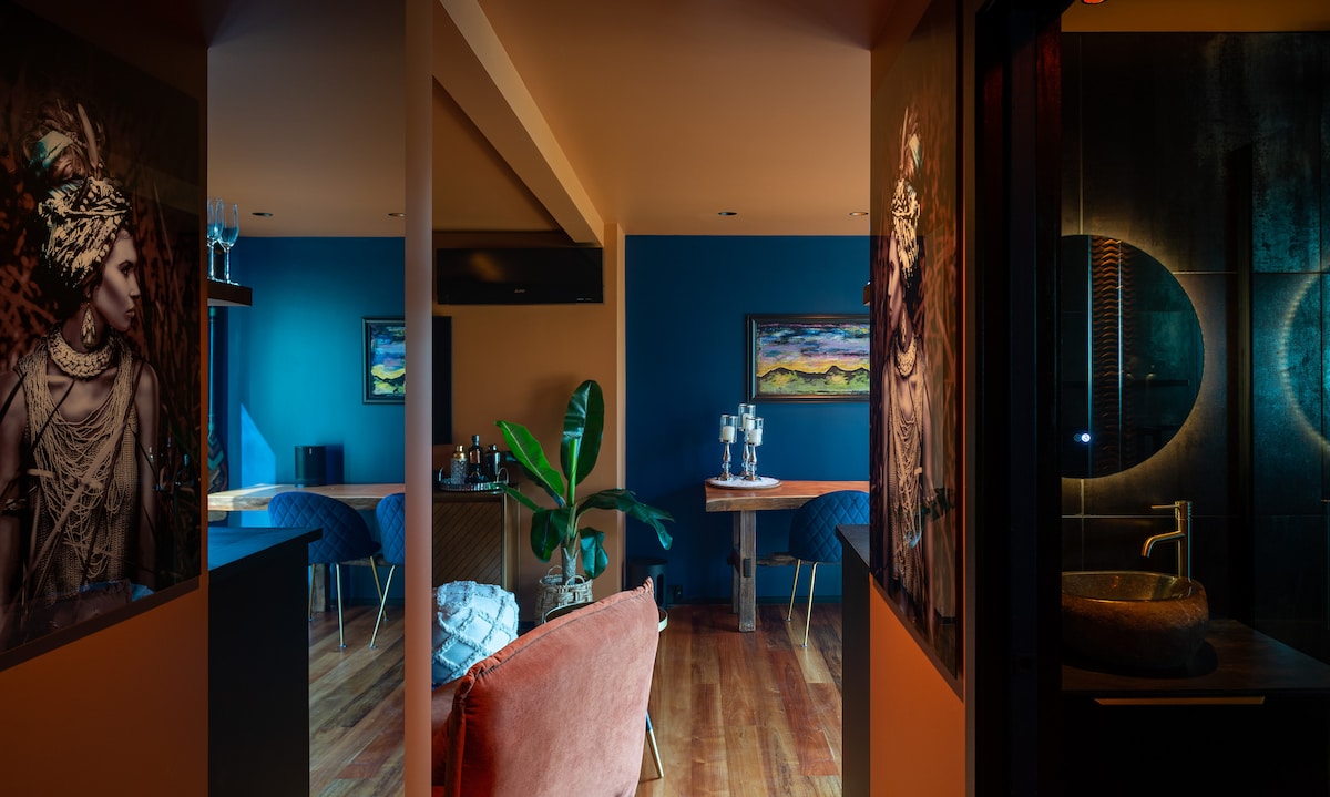 Te damos la bienvenida al mundo al revés... Un lugar que hemos diseñado para ti. donde podrás olvidarte de las preocupaciones del trabajo y las exigencias de la vida diaria. Un lugar opuesto a lo habitual. Aquí encontrarás un espacio donde podrás relajarte y ser tú mismo. Ya sea un gruñón del sofá, un habitante de la cama o un aficionado a la música house. Además, ¡aplaudimos a todos los fanáticos de la aventura! (Quiero decir, es Nelson). UpsideDown incluye música de alta fidelidad e iluminación de última generación para crear el espacio definitivo para que lo disfrutes.