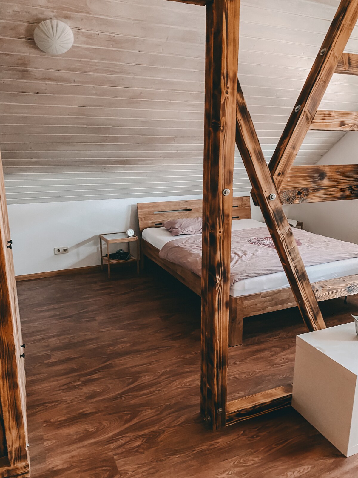 Nuestra pequeña casa (construida en 2012, galardonada con el premio estatal de Baden-Württemberg por su construcción ejemplar) se encuentra en el jardín de una antigua granja en un pueblo tranquilo. El mobiliario es sencillo para que puedas disfrutar realmente de la belleza de la casa y el jardín. Por lo tanto, hemos optado deliberadamente por no incluir un televisor.
