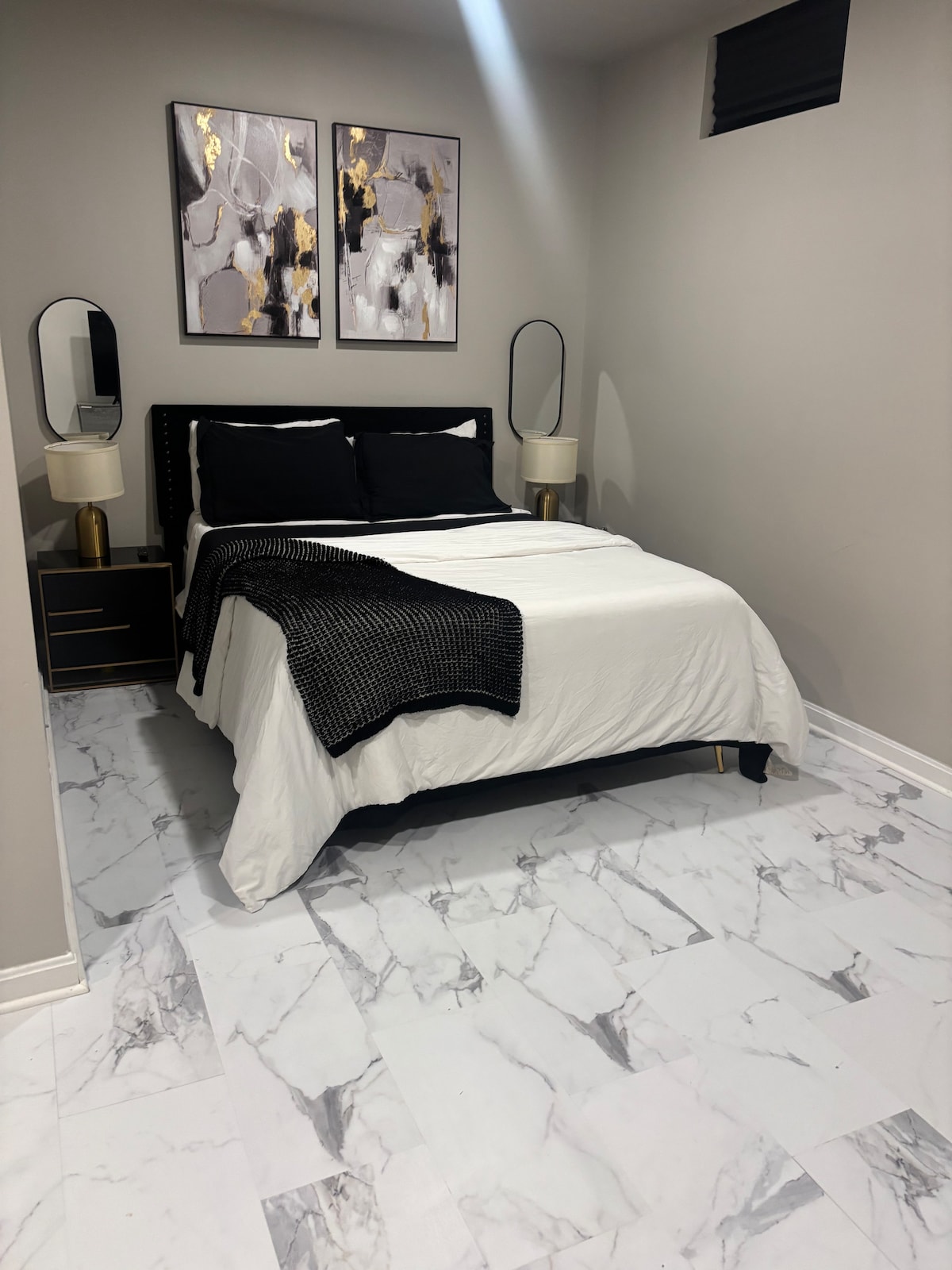 En nuestra suite King Bed, primero entrarás en un hermoso y luminoso vestíbulo de mármol decorado modernamente con techos abovedados. Se proporciona autorregistro o serás recibido por los anfitriones profesionales y sonrientes. Y cuando finalmente estés listo para meterte en la cama, después de un baño de burbujas en el jacuzzi para dos personas o la ducha de mármol a ras de suelo, te hundirás en una nube mullida de 14 pulgadas de grosor. Ponte cómodo y relájate disfrutando de la Smart TV de alta definición de 84 pulgadas. Ofrecemos paquetes románticos y masajes.