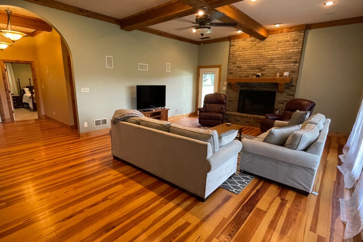 Ven a relajarte en este tranquilo y elegante «refugio frente al lago» con un gran patio trasero y un hermoso lago rodeado de los relajantes sonidos de la naturaleza. Se proporcionan barcas de pesca, kayak y remo sin coste adicional. Relájate y disfruta de un partido o una película en la pantalla grande de la sala de cine equipada con aperitivos, juegos y máquina de palomitas de maíz. Relájate en la sauna portátil con aromaterapia. Cerca de tiendas, restaurantes y del cine AMC. Este espacio tiene algo para todos los gustos.