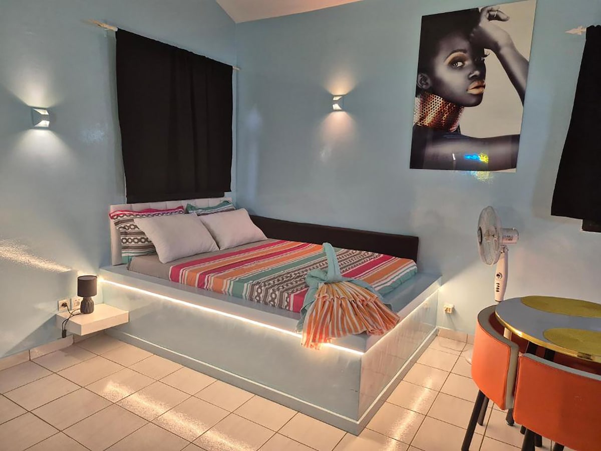 Encantador estudio independiente en Saly Niakh Niakhal, ideal para una estancia en pareja. Cuenta con una cama doble, cocina equipada y baño privado. Disfrutará de una agradable zona exterior común cubierta con sofá y mesa grande, así como de la piscina comunitaria. A 5 minutos de la playa y cerca de las tiendas, este estudio ofrece comodidad, privacidad y convivencia en un entorno tranquilo.