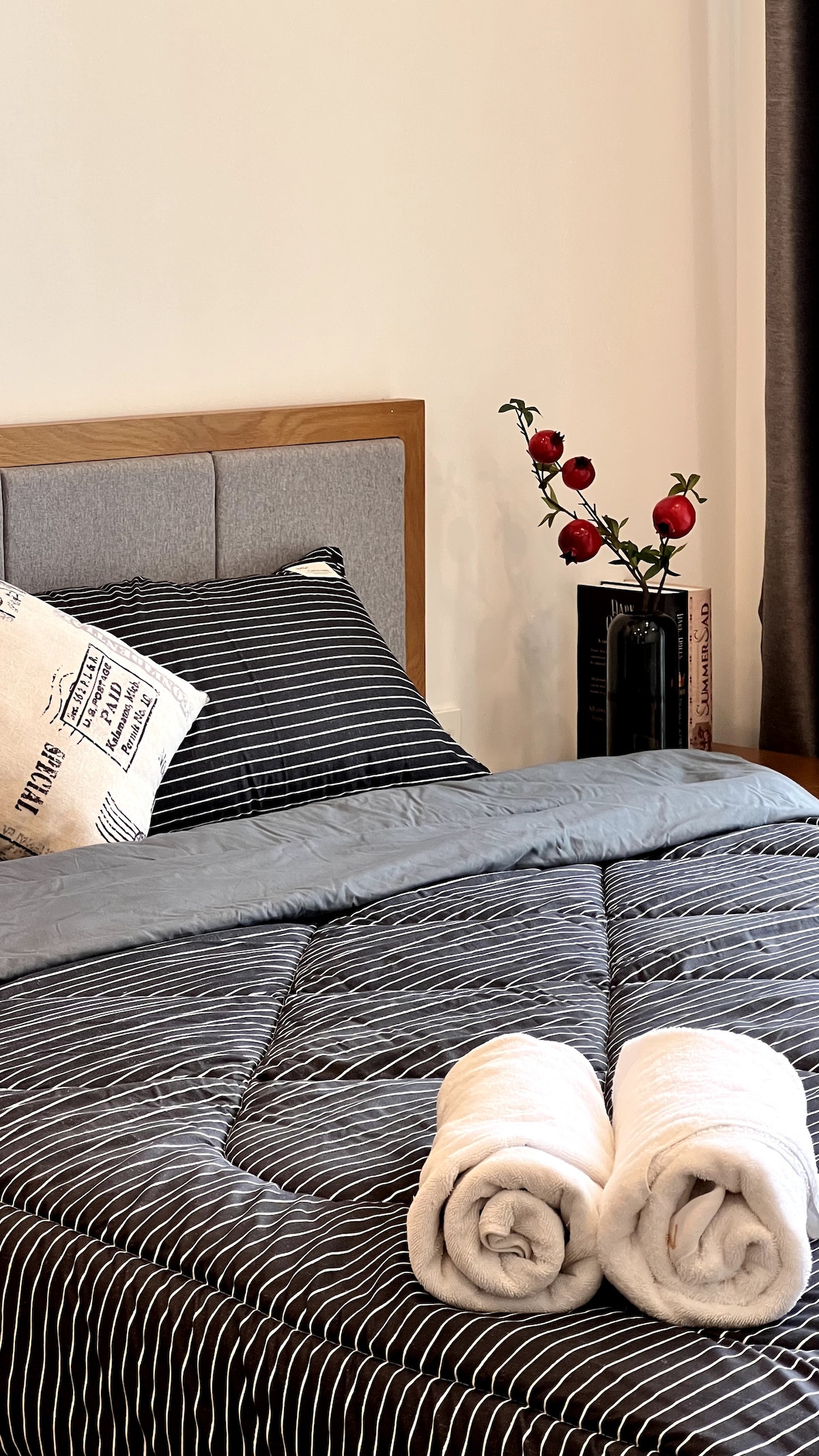 A stylish & comfortable apartment 85m2 at Hung Phuc Happy Residence Premier located in the heart of district 7, Phu My Hung, with just a short walk to all the best shops, restaurants, and conveniences. Nearest bus stop in front. Highly educated and quite neighbors that surrounded by green parks and beautiful villas. Decorated in modern Japandi x Wabi sabi style with a focus on natural materials & clean lines. A great getaway or even staycation for those who want to experience new things.