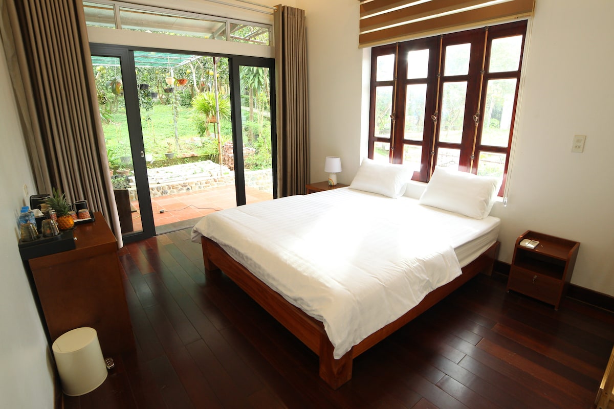 Cama king size y sofá cama | Bosque Cúc Phương | Vistas a la piscina