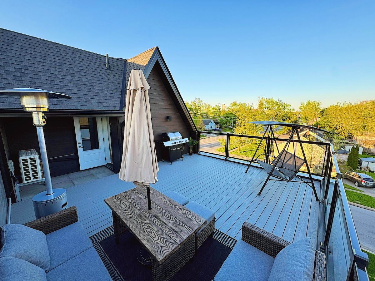 Precioso apartamento de 2 dormitorios en el corazón de Niagara Falls. ¡A poca distancia a pie de las cataratas y del casino! Este espacioso apartamento está en la planta superior y está lleno de carácter y encanto, incluyendo techos altos, enormes ventanas luminosas y un patio en la azotea. Se proporcionan todas las comodidades, ¡solo tienes que presentarte y disfrutar! ¡Todas las sábanas, artículos básicos de baño (champú, acondicionador, jabón y secador de pelo) y una cocina totalmente equipada donde puedes hacer cualquier cosa, desde preparar una taza de café rápida hasta cocinar una comida elaborada!