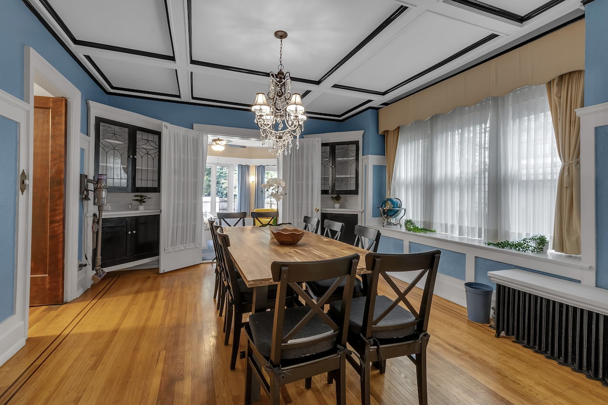 Bienvenido a la casa unifamiliar de ladrillo de 1740 pies cuadrados, 4 dormitorios y 1,5 baños, a 5 minutos de las cataratas y a poca distancia a pie del distrito médico y del Centro de Arte y Cultura de Niágara. ¡Disfruta del encantador ambiente del porche delantero privado y relájate en el elegante interior entre tus actividades en las Cataratas del Niágara! ✔ Cocina completa con cafetera Keurig ✔ Smart TV, tocadiscos, juegos de arcade ✔ Oficina. WiFi ✔ de 500 mbps Estacionamiento en el✔ garaje. ✔ Patio trasero ✔ Ducha de alta presión y altavoz/ventilador de escape Bluetooth.