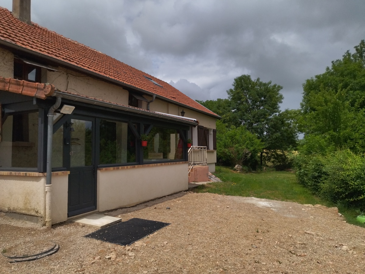 Pequeña casa acogedora y completamente renovada para dos personas con dormitorio y baño abajo y sala de estar con cocina arriba. La casa está a solo 25 minutos de la autopista A6 y en el límite de un pueblo y a pocos pasos estás en el bosque. El lago Saint Agnan está a solo 15 minutos y Vezelay a 30 minutos. La casa está situada junto al edificio principal, pero con su propia entrada y terraza, por lo que tiene mucha privacidad. En el pueblo hay una tienda de comestibles con pan, bar y restaurante. El siguiente pueblo tiene más tiendas.
