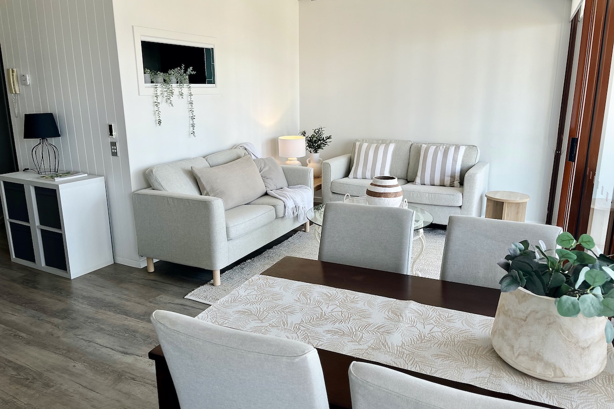 Bienvenido a Nobby Beach Apartment, situado en un rincón tranquilo y apacible de la hermosa Gold Coast de Queensland. Estamos a 400 metros de la playa y aún más cerca de los vibrantes restaurantes y bares del recinto de Nobby Beach, The Arc, Ally Chow y Mexicali Taqueria, por nombrar algunos. El espacio El apartamento es un tranquilo y relajante apartamento de dos dormitorios y dos baños. Con dos balcones, tienes la opción de tener vistas a una tranquila piscina con cascada, mientras que el balcón trasero más grande tiene vistas a las copas de los árboles.
