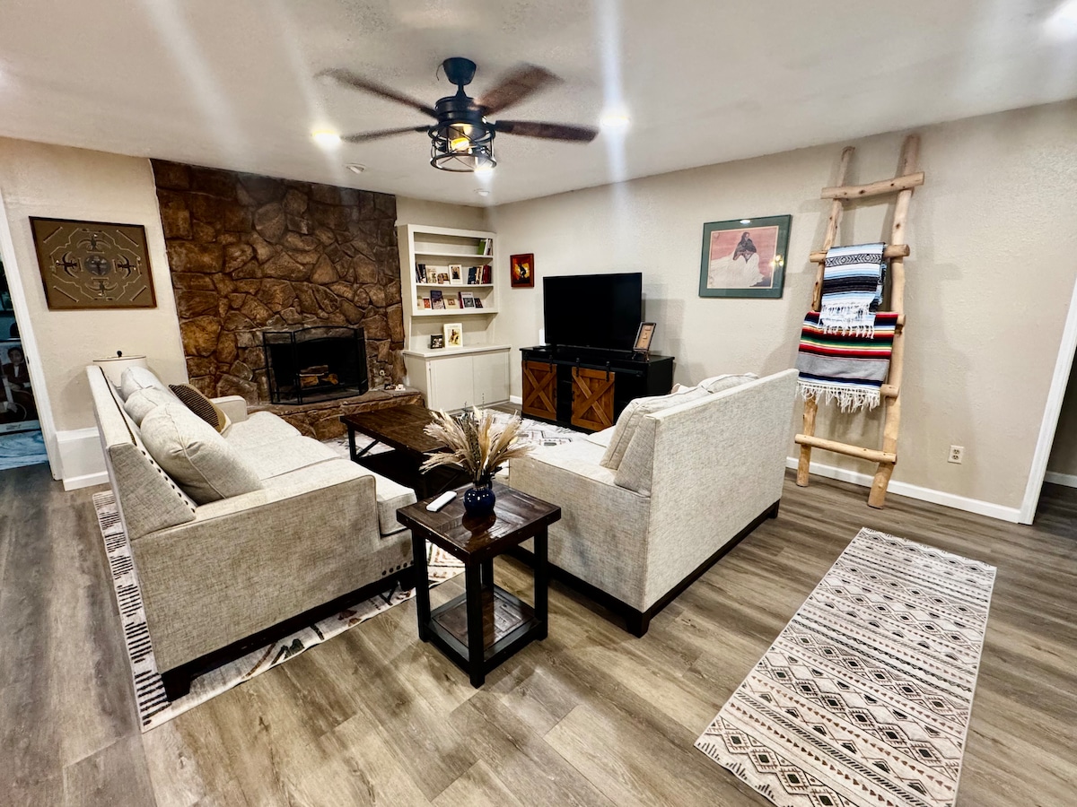 Your family will be close to everything when you stay at this centrally-located home. Enjoy the big backyard and the newly renovated kitchen. Sleep in comfort in one of the 3 Queen-sized beds. This home is just minutes from great restaurants, the mall, movie theater, and just 2.5 miles from OU’s campus.