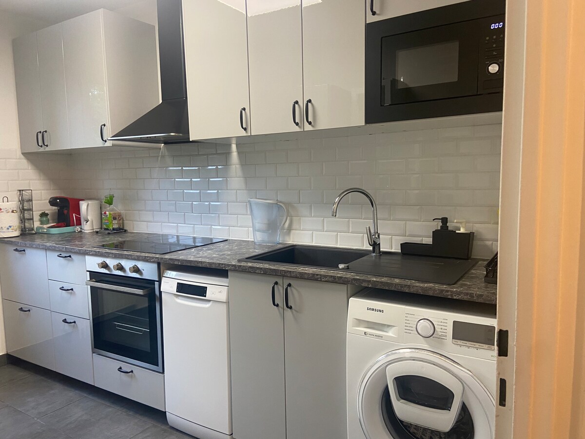 Atractivo estudio de 31 m² Totalmente amueblado con cuidado, con todas las comodidades y muy funcional. El edificio tiene 1 ascensor, 1 cuarto de bicicletas y 1 plaza de aparcamiento. El apartamento consta de una entrada, 1 gran sala de estar cómoda con hermosas vistas abiertas, 1 escritorio, 1 cocina equipada y 1 gran baño amueblado con inodoro. 1 lavadora secadora, 1 placa eléctrica con campana extractora, 1 horno, 1 microondas, 1 nevera/congelador, múltiples utensilios de cocina. En el salón, 1 cama de 2 plazas y 1 televisor.