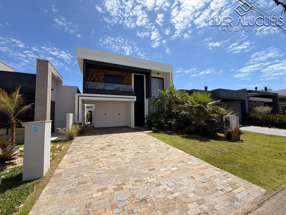 ¡Aceptamos mascotas! Disfruta de esta casa superequipada, junto al lago, con terraza privada, pérgola, aire acondicionado, wifi, barbacoa móvil y piscina en el patio trasero. ¡A solo 3 minutos en coche de la playa! La propiedad o el condominio tiene: * Sauna * Piscina infinita * Sala de juegos * Gimnasio * Pista de tenis y fútbol playa; ¡Importante! La piscina termal de la propiedad solo se puede encender cuando la temperatura exterior es superior a 24 grados, no llueve, hay poco viento y es para más de 3 noches.