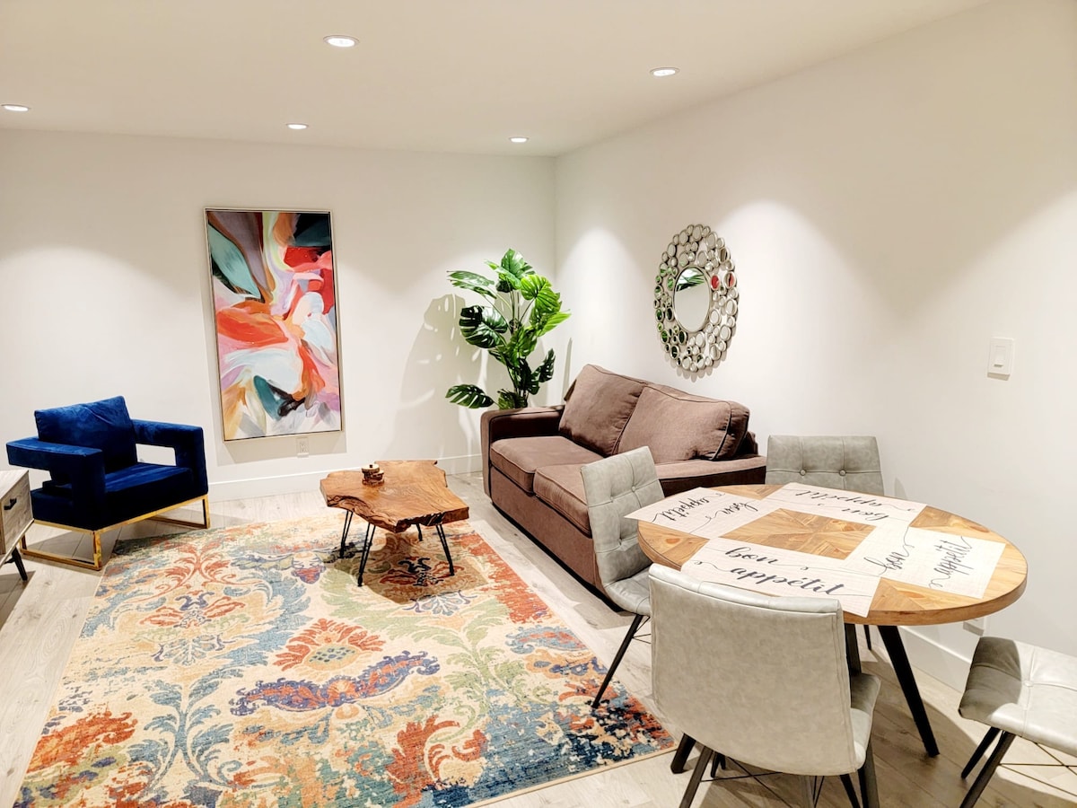 ¡Estudio privado a nivel de jardín en North Vancouver! Relájate junto a la chimenea de gas al aire libre con una copa de vino, o dirígete a las montañas, los senderos o la playa, todo a solo 5 minutos. Este estudio céntrico y recientemente renovado cuenta con entrada privada, cocina equipada, TV inteligente, wifi y un patio ajardinado perfecto para tomar el café por la mañana con los pájaros. Estaremos encantados de compartir nuestros restaurantes, cervecerías y tiendas locales favoritos para ayudarte a explorar. ¡Tu acogedor hogar lejos del hogar te espera!