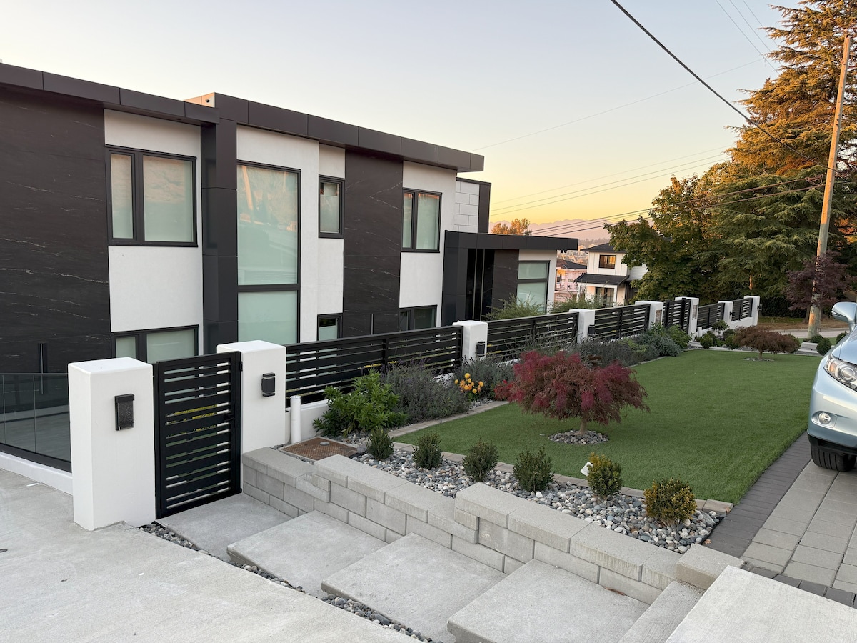 Nuestra suite en el sótano privado de 2 dormitorios de nueva construcción, espaciosa y elegante, ofrece una mezcla perfecta de lujo y comodidad. Con su propia entrada privada, disfrutarás de una privacidad y comodidad incomparables. Disfruta de wifi de alta velocidad (1 GB) y aparcamiento gratuito en el hotel para 2 coches/1 autocaravana. Aprovecha la cocina totalmente equipada y el jardín trasero vallado Ubicada en el corazón de Lower Mainland, esta suite está a pocos minutos de la vibrante energía de la ciudad, pero escondida en una calle tranquila.