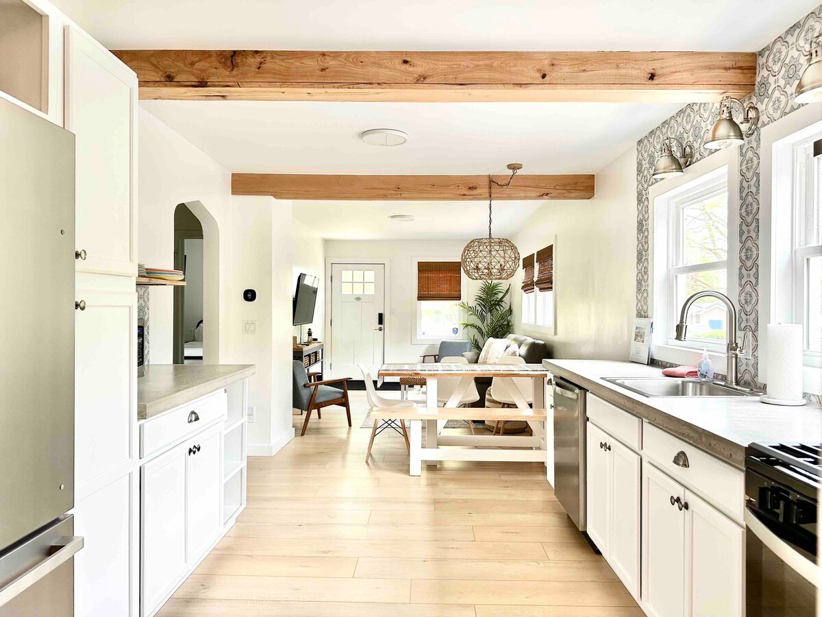 Recién restaurada, The Cozy Gray Cottage está lista para ser tu hogar lejos de casa y puerta de entrada a algunos de los hermosos parques, restaurantes, tiendas, universidades y hospitales de Erie. Situada junto a la autopista, esta joya oculta es la escapada perfecta para viajeros solteros, parejas, amigos o familias y puede alojar hasta 6 huéspedes. Detalles de la ubicación: A 3 minutos en coche de la tienda de comestibles más cercana. A 8 minutos en coche del campus de LECOM, Waldameer, el parque estatal y las playas de la isla Presque, tiendas y el aeropuerto internacional de Erie.
