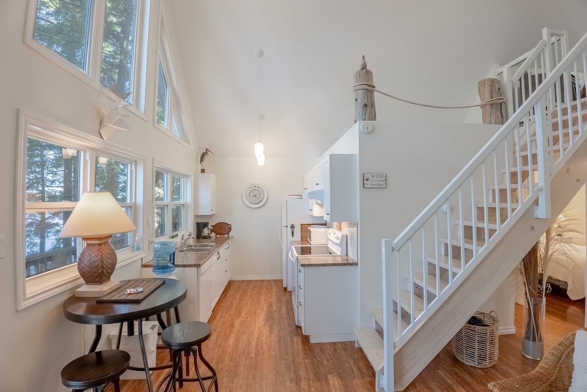 Ponte un suéter y disfruta del aire fresco del otoño alrededor del crepitante fuego al aire libre. Sentado en medio de altos pinos con sus enormes ventanas con vistas al lago abierto, a menudo verás a nuestras juguetonas nutrias. Siéntate junto a la chimenea para disfrutar de la cesta de desayuno que se entrega en tu primera mañana. Situada en la carretera que conduce al pueblo de Sharbot Lake, Windswept Cottage ofrece la combinación perfecta de privacidad y comodidad en la ciudad. Echa un vistazo a nuestra segunda casa de campo en la propiedad: Windsong Cottage en Airbnb. No se admiten mascotas.