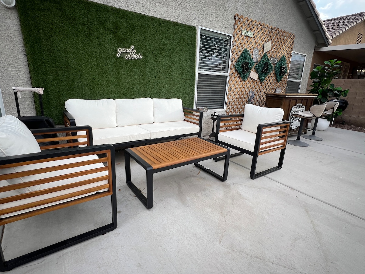 Modernas vacaciones/escapada para trabajar desde cualquier lugar en la fabulosa Las Vegas, ¡a solo 6 millas del centro de la ciudad! Relájate con comodidad en nuestra elegante y espaciosa casa con un refugio tamaño king y una experiencia de baño de spa en suite en el dormitorio principal. La relajación al aire libre te espera en nuestro exuberante oasis de jardín con hamaca, comedor, zona de conversación y chimenea. Nuestra luminosa casa está cerca de todo lo que quieras hacer en LV: naturaleza, compras, juegos de azar, vida nocturna, buena comida, ¡lo tenemos todo en la capital mundial del entretenimiento!