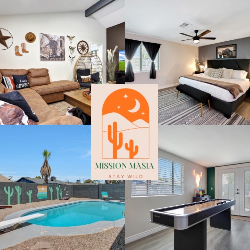 Bienvenido a The Kierland Estate, un refugio de lujo de 4 dormitorios y 3 baños en el corazón de Scottsdale. Ubicada en casi un acre, esta finca de un solo nivel ofrece más de 325 metros cuadrados de comodidad de lujo. Disfruta de una piscina privada climatizada, un spa de gran tamaño, una mesa de billar al aire libre, un putting green, una barbacoa incorporada y una cancha deportiva para jugar al pickleball y al baloncesto. Perfecto para familias o grupos que buscan relajación y diversión. ¡Disfruta de la mejor escapada a Scottsdale y reserva tu estancia hoy mismo!