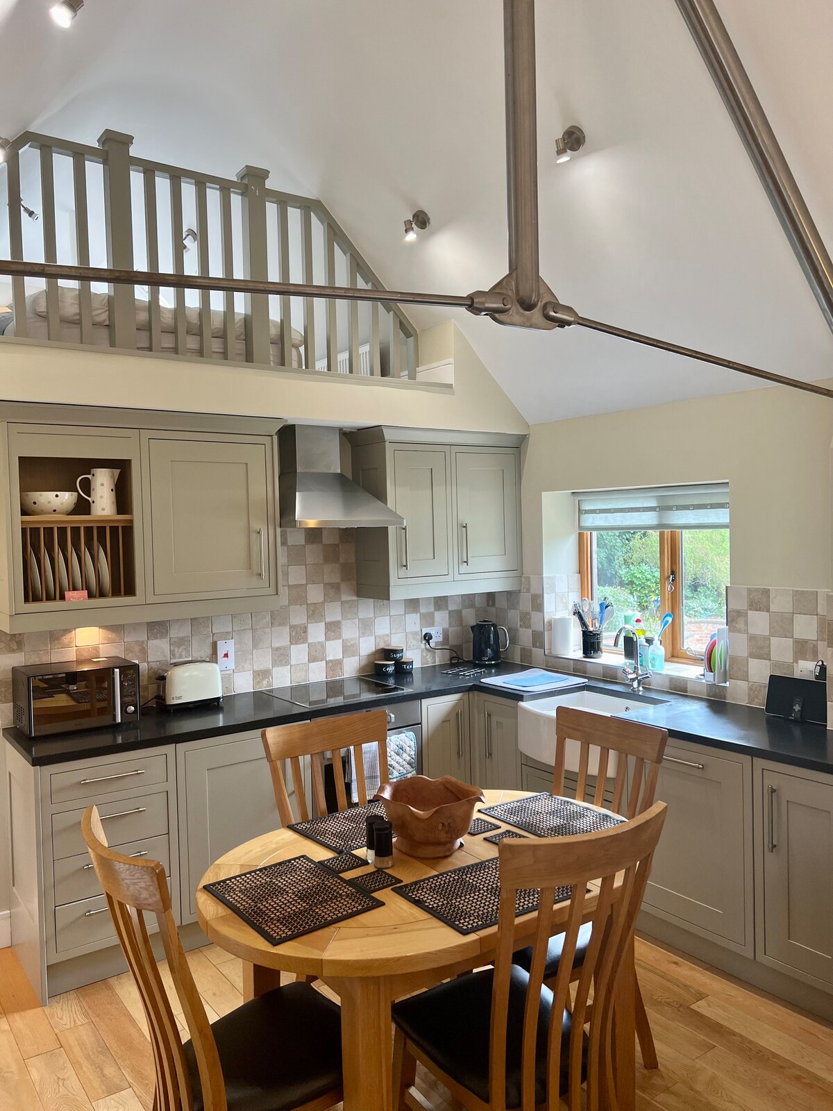Una lujosa conversión de granero con cocina que ofrece una escapada única y romántica enclavada en la pintoresca campiña de Warwickshire. Un lugar para relajarse y desconectar, ya sea en nuestra preciosa bañera independiente, nuestra cama con dosel o poniendo los pies delante de la estufa de leña y disfrutando del cálido y ambiental resplandor. Date un chapuzón en nuestra tradicional bañera de hidromasaje al aire libre situada en tu patio privado y observa la puesta de sol a través de los campos. Esta es realmente una estancia impresionante e inolvidable.