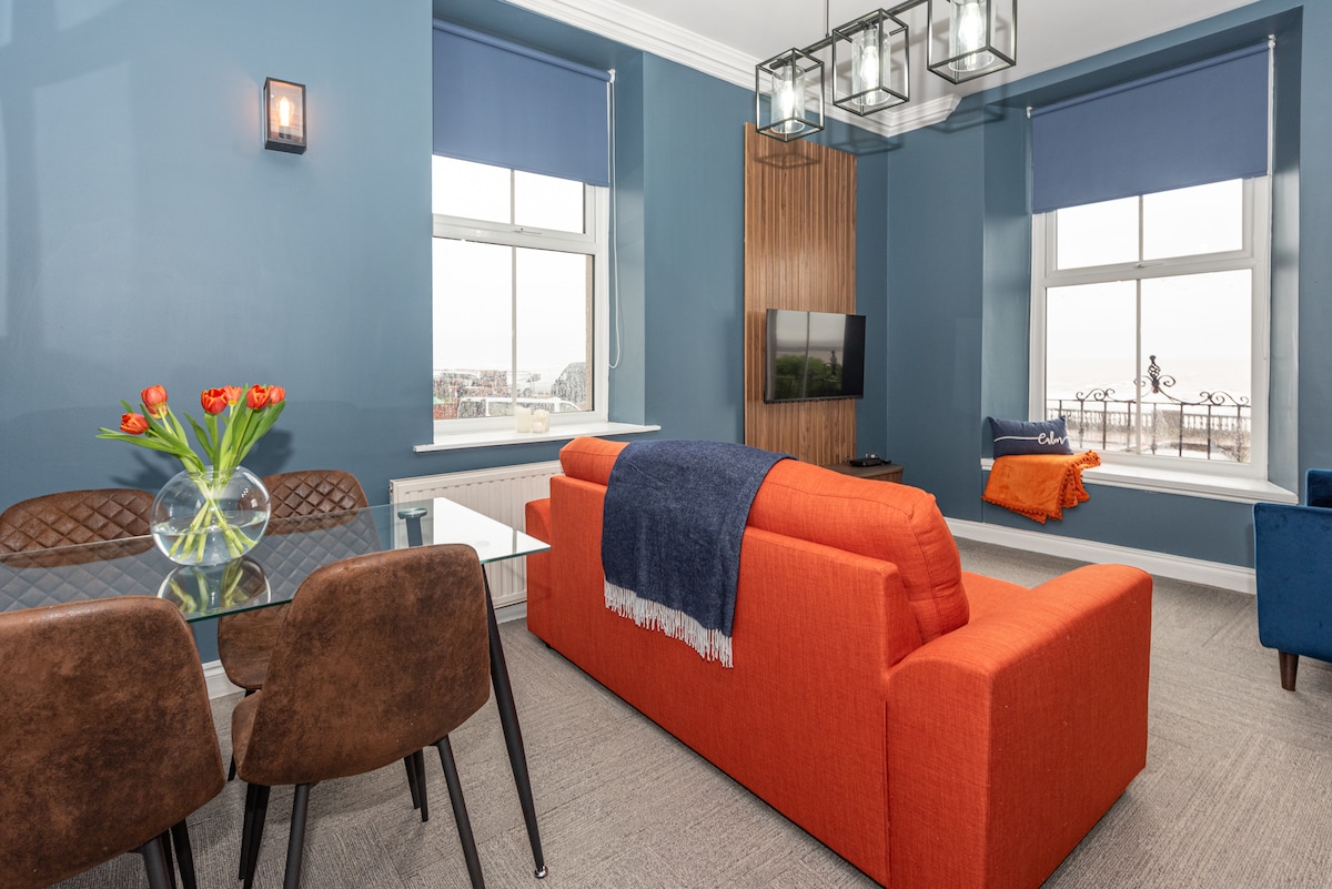 Nuestro hermoso y perfectamente situado apartamento frente al mar, se distribuye en dos plantas, aquí en Roker, Sunderland. Uno de los alojamientos más buscados. Es un lugar perfecto para viajes de negocios o de placer mientras visitas el noreste de Inglaterra. Cerca de varios pubs, restaurantes y servicios, no podrías pedir un lugar mejor para llamar hogar lejos de casa. Recientemente han abierto varios pequeños restaurantes independientes que sirven excelentes comidas y bebidas. Los recomiendo encarecidamente.