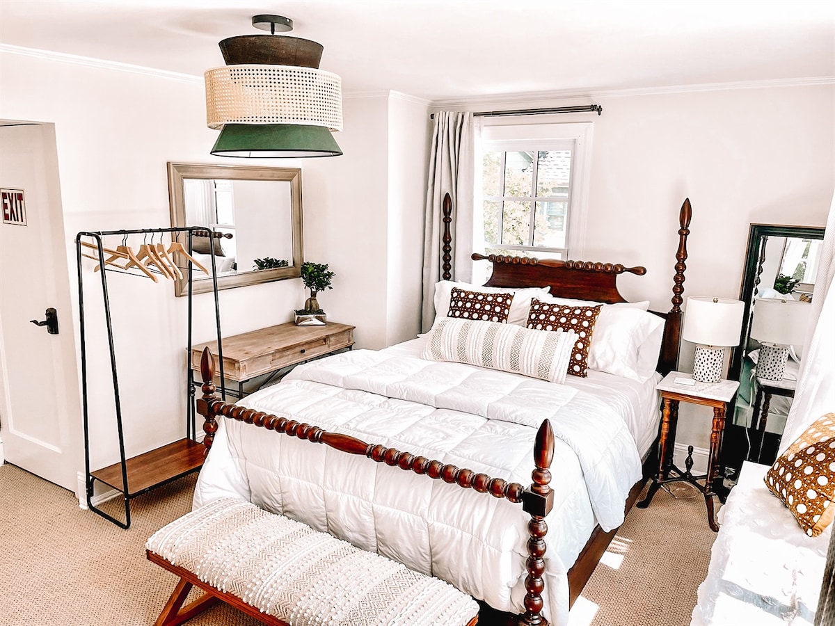 Suite n.º 6: ubicada en la segunda planta, esta encantadora suite ofrece la comodidad de una cama «queen» y el mejor baño de The Buttonwood. Las sábanas blancas, una ventana grande y detalles bien pensados hacen de esta habitación una estancia obligada. Incluye microondas, mininevera y televisión inteligente para todas tus necesidades de películas. Todas las habitaciones incluyen champán a la llegada, 2 etiquetas de playa, 2 tumbonas, bolsa de playa y 2 toallas de playa. Café y té de cortesía en el precioso solárium.