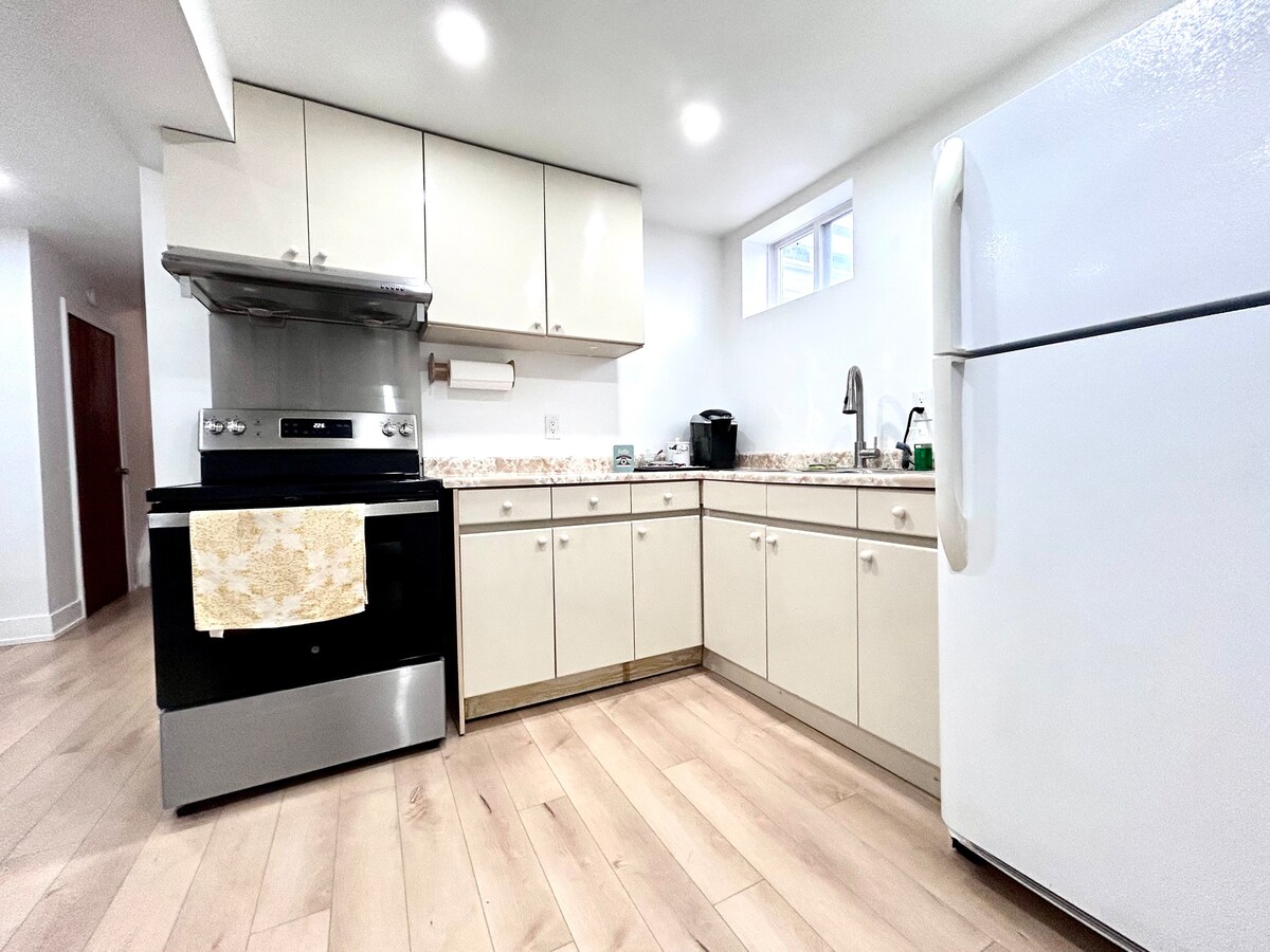 Baño privado en el sótano, cama tamaño queen, cerca del metro