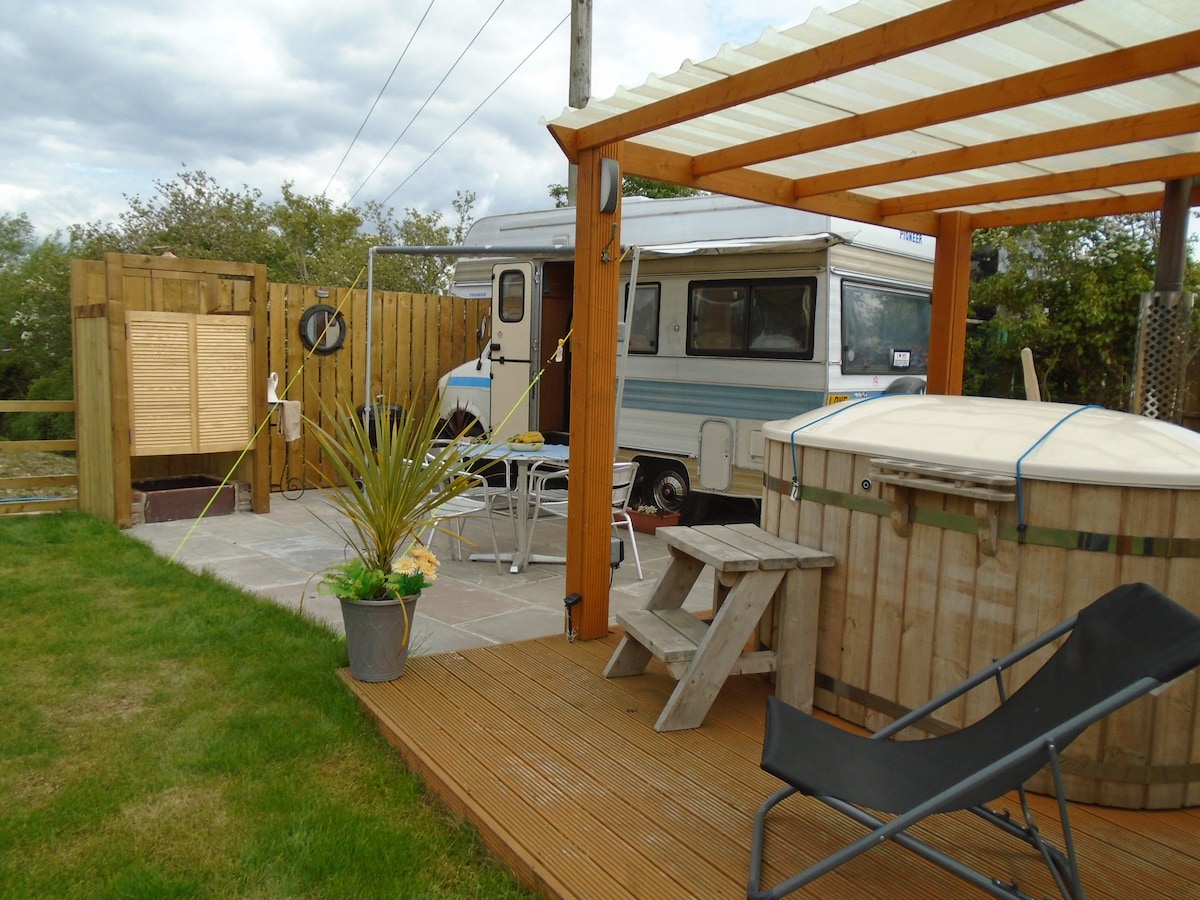 Una experiencia única que tenemos para ofrecer, ¿por qué no pasar una noche en el escarabajo del amor retro? El Love Bug tiene capacidad para alojar cómodamente a dos personas. El Love Bug tiene que ofrecer: * Instalaciones de cocina * Comedor interior y exterior * Inodoro dentro del Love Bug y hemos construido un inodoro y ducha de uso exclusivo para el Love Bug. * También una ducha exterior para los días de verano. * Jacuzzi privado XL * Pozo de fuego y barbacoa fuera de Love Bug. * Calefacción central. * Sin costes adicionales.