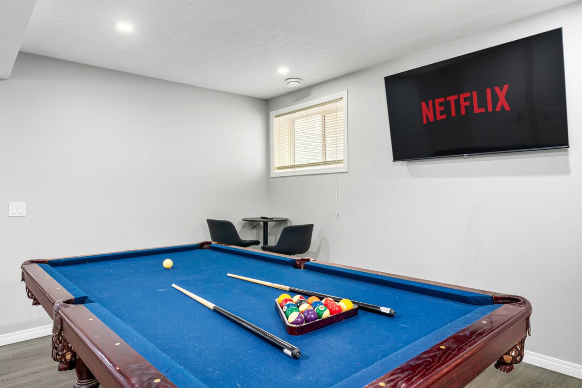 Bienvenido a la hermosa y espaciosa casa de retiro Ravine: - Más de 4000 pies cuadrados, a pie de un barranco impresionante, vistas a la montaña - Entretenimiento en la mesa de billar. - Aparcamiento gratuito, artículos de baño y cocina gratuitos, wifi gratuito - Cocina totalmente equipada; barbacoa en el balcón - Costco, supermercados cercanos. - Centro de la ciudad, aeropuerto YYC a 15 minutos - Acceso rápido a Banff. - 6 dormitorios, 3,5 baños, - 10 camas: 7 individuales + 2 tamaño queen + 1 tamaño king - Aire acondicionado - Se admiten mascotas (se aplica una tarifa) - Perfecto para varias familias, máximo 5 coches o 15 personas en cualquier momento.