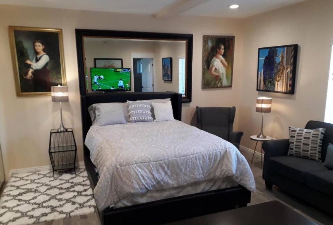 Me encantaría darte la bienvenida a tu hogar lejos de casa. Este encantador estudio está en el corazón de Northridge. Cerca de las autopistas 405 y 101, te encantará la proximidad a CSUN, el lago Balboa, Starbucks, Universal Studios y muchas otras opciones. El espacio es perfecto para parejas, viajeros solitarios o aventureros de negocios. Tanto si estás aquí para explorar Los Ángeles como si solo necesitas un lugar tranquilo para relajarte, este estudio tiene todo lo que necesitas. ¿Listo para sentirte como en casa? Me encantaría hospedarte. ¡Reserva tu estancia hoy mismo!