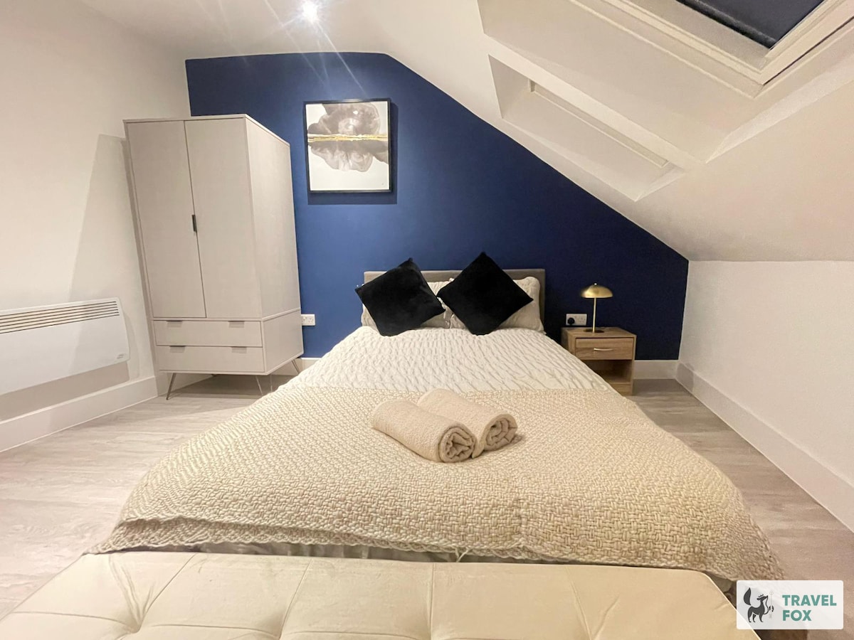 Sea nuestro huésped y disfrute de todo este apartamento. Situado en el centro de la ciudad, amplio alojamiento situado en dos niveles. Perfecto para parejas que quieran relajarse en este apartamento bien diseñado que ofrece aire acondicionado, gran bañera de hidromasaje, conexión WiFi gratuita y terraza en la azotea del centro de la ciudad. Un espacio de lujo situado en el corazón del centro de Loughborough, que permite un fácil acceso a todas las tiendas, restaurantes y bares. Su céntrica ubicación también permite un fácil acceso a la estación de tren, las rutas de autobús y la universidad.
