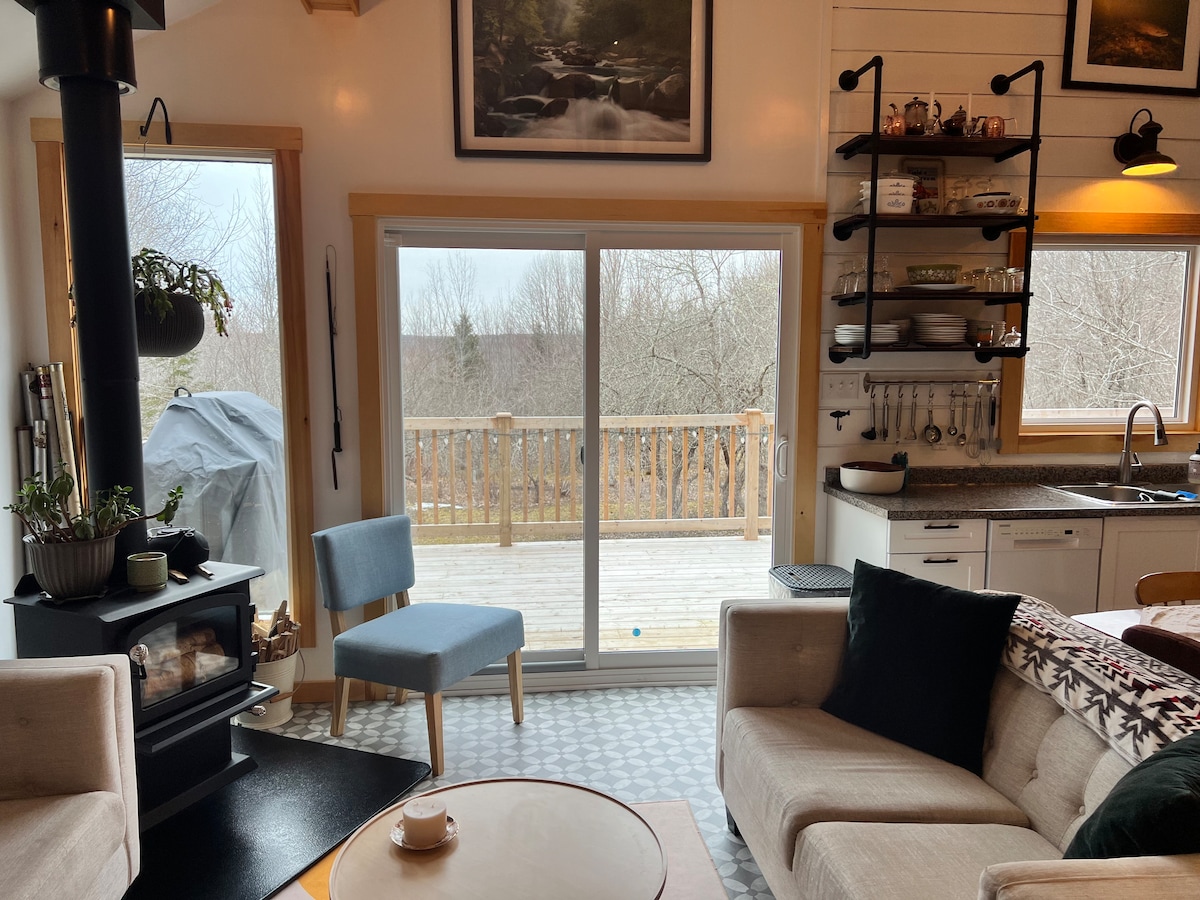 Encuentra paz y relajación en nuestro tranquilo refugio junto al río. Los huéspedes están invitados a disfrutar de unas impresionantes vistas del río Miramichi desde las sillas colgantes. Disfruta de café y té de cortesía mientras observas el amanecer desde tu gran terraza privada. Nuestro chalet está a 25 minutos de Miramichi y a pocos minutos del pueblo de Blackville. Para grupos más grandes, consulta nuestra casa de campo Candlelight. Disfruta de acceso privado al río Miramichi. ¡Cada temporada ofrece nuevas experiencias para que los huéspedes disfruten!