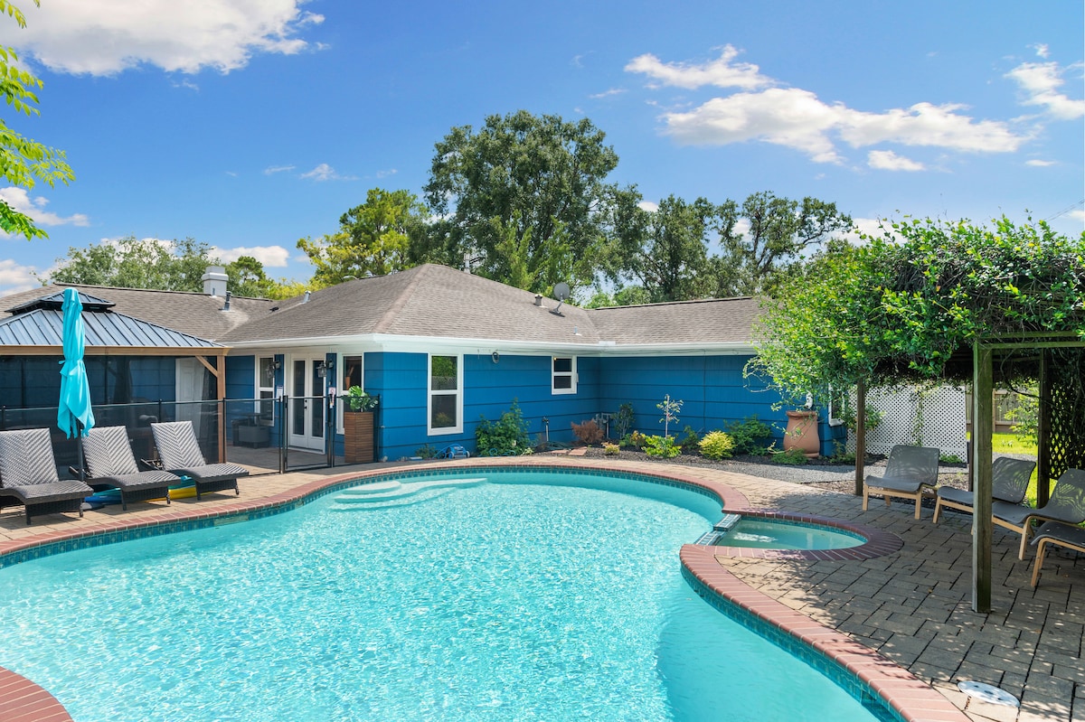 ☀Walk to NRG in 15 minutes ☀Heated pool, hot tub, cabana lounge, and full game room ☀Sleeps 10 beds, perfect for groups & events ☀Chef’s kitchen with huge island, 2 ovens ☀7 minutes drive to Med Center and downtown ☀ Large screened in gazebo ☀ Large propane BBQ grill ☀Blazing Fast Wi-Fi ☀7 Smart TVs in all rooms ☀ Complimentary coffee ☀ Fresh linens and bath essentials ☀ Washer and dryer ☀Large Private Backyard ☀ Free Parking in the driveway & street ☀ Heated pool in the winter (ends 04/01)