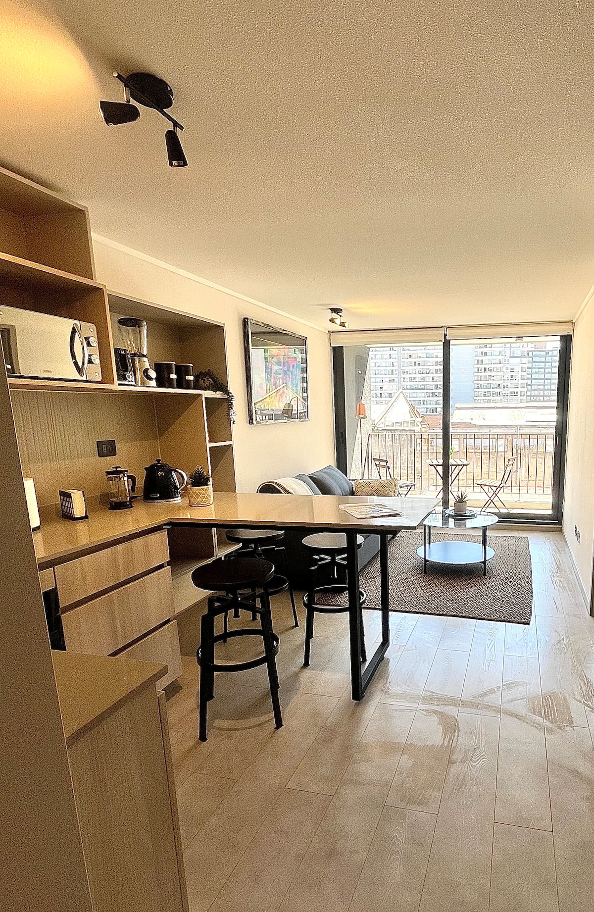 Disfruta de una estadía inolvidable en este estudio moderno, luminoso y completamente nuevo. Ubicado en el corazón de Ñuñoa, en un edificio que es un ícono de diseño y cultura tendrás la mezcla perfecta entre descanso, trabajo y entretención. Ya sea que vengas por un concierto al Estadio Nacional, por trabajo, para explorar Santiago o simplemente para descansar... este espacio está diseñado para disfrutes fuera de casa, con detalles hoteleros y calidez de hogar.