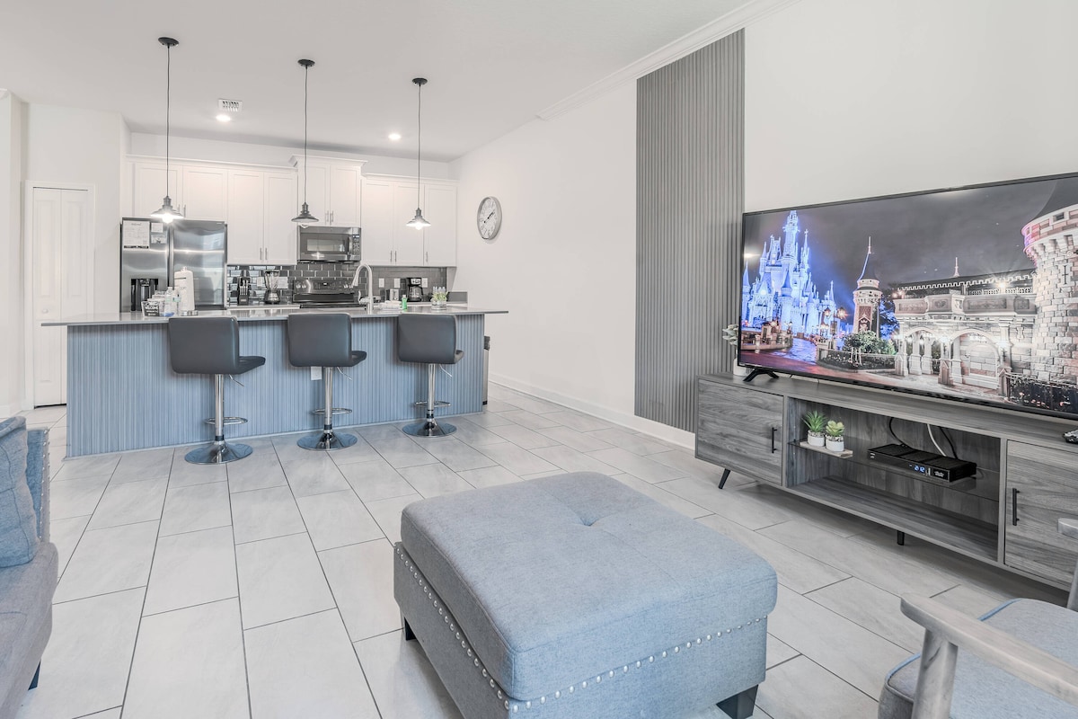 - Sin tarifas de servicio de Airbnb. - ¡Descuentos semanales y mensuales! - Casa adosada de 3 dormitorios y 3 baños ubicada en el corazón de Disney. Comunidad cerrada, piscina, gimnasio. - Propiedad de Disney (13 minutos), Disney Springs (20 minutos), Universal Studios (25 minutos), Sea World (24 minutos), Centro de Convenciones (17 minutos). - A 5 minutos de tiendas, atracciones y restaurantes. - Mantenimiento profesional para ofrecerte a ti y a tu familia la mejor experiencia de servicio al huésped. - Sala de cine. - Televisor de pantalla plana de 75 pulgadas. - Totalmente equipado con todos los elementos básicos.