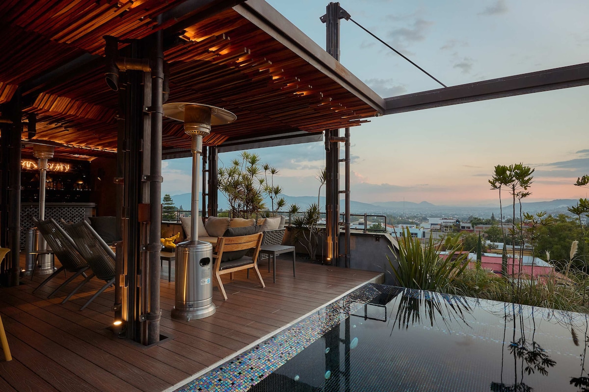 Jacuzzi privado con vista panorámica. Casa Mitla