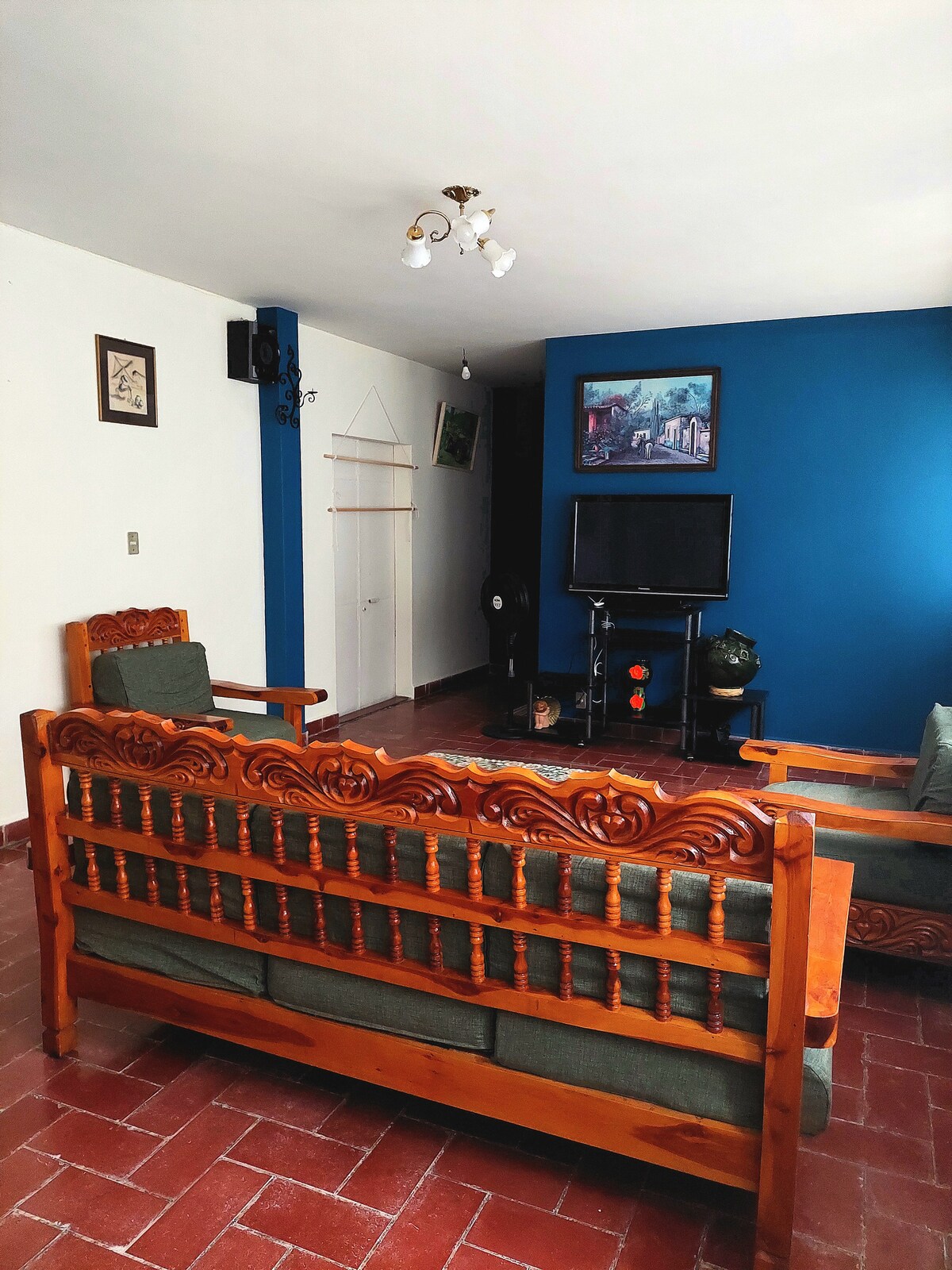 Disfruta de este alojamiento tranquilo, fresco y céntrico, a solo 10 minutos del zócalo de la ciudad caminando. Servicios: Una habitación con cama matrimonial Smart TV, baño completo, cocineta con cafetera y licuadora. Sala con TV por cable, WIFI, cochera para 1 auto, contamos con servicio de agua caliente, gas, utensilios de cocina. Entrada directa a la calle principal, transporte público en la puerta, a una cuadra una tienda de autoservicio.