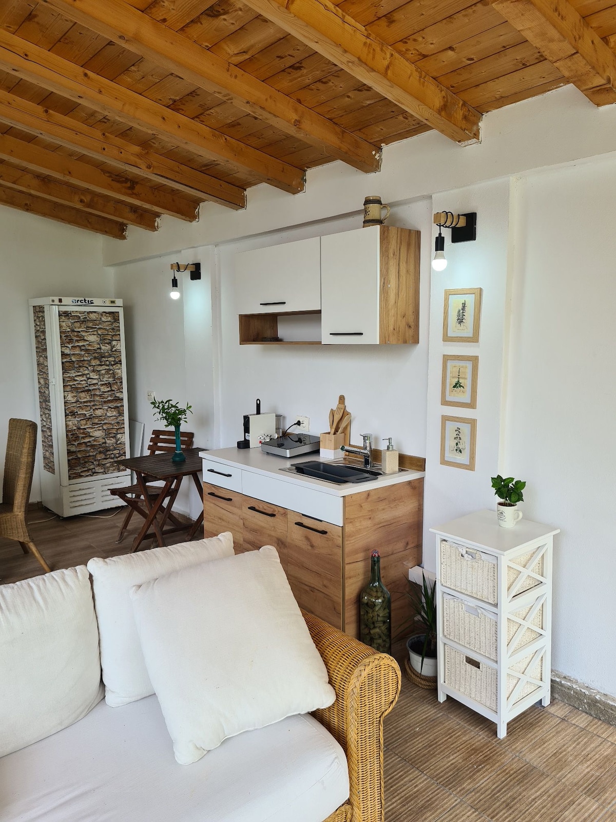 Este apartamento estudio tiene una superficie total de 100 m2, la mitad de ellos es la gran terraza que alberga el jacuzzi privado muy íntimo. Este es el lugar perfecto para parejas, porque la línea de nueces que está cerca de la terraza ofrece la cantidad exacta de privacidad natural necesaria para disfrutar plenamente del jacuzzi. El apartamento es un estudio de espacio abierto con una cama king size, un sofá, una zona de comedor y una kitchenette. No se permite fumar en el interior, solo se permite en la terraza.