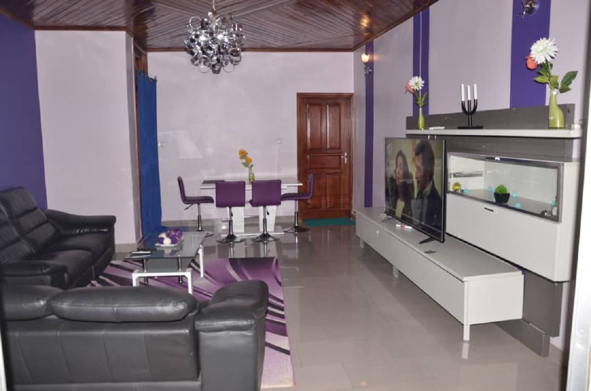 Este tranquilo alojamiento situado en "Emana-Pont" ofrece una estancia tranquila para toda la familia. Magníficas vistas a la piscina, a las montañas y al estadio Olembe. Ideal para estancias cortas y largas con amas de casa, restaurante y sala de masajes. Un coche gratis con conductor incluido (10 euros más). Posibilidad de reducción fuera del vehículo. NOTA: TODOS LOS HUÉSPEDES SE RECOGEN GRATUITAMENTE EN EL AEROPUERTO O EN LA AGENCIA DE VIAJE DE DESEMBARQUE EN YAUNDÉ BAJO PETICIÓN.